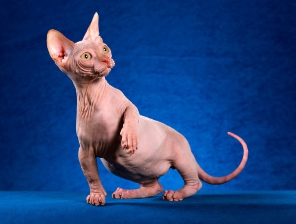 Ilga uodega, trumpos priekinės kojos, dalinis arba visiškas plaukų nebuvimas yra būdingi rūšiai. Katės turi daug energijos. Jie yra judrūs, tuo pačiu labai meilūs savininkams ir aplinkiniams, pasitikintys.