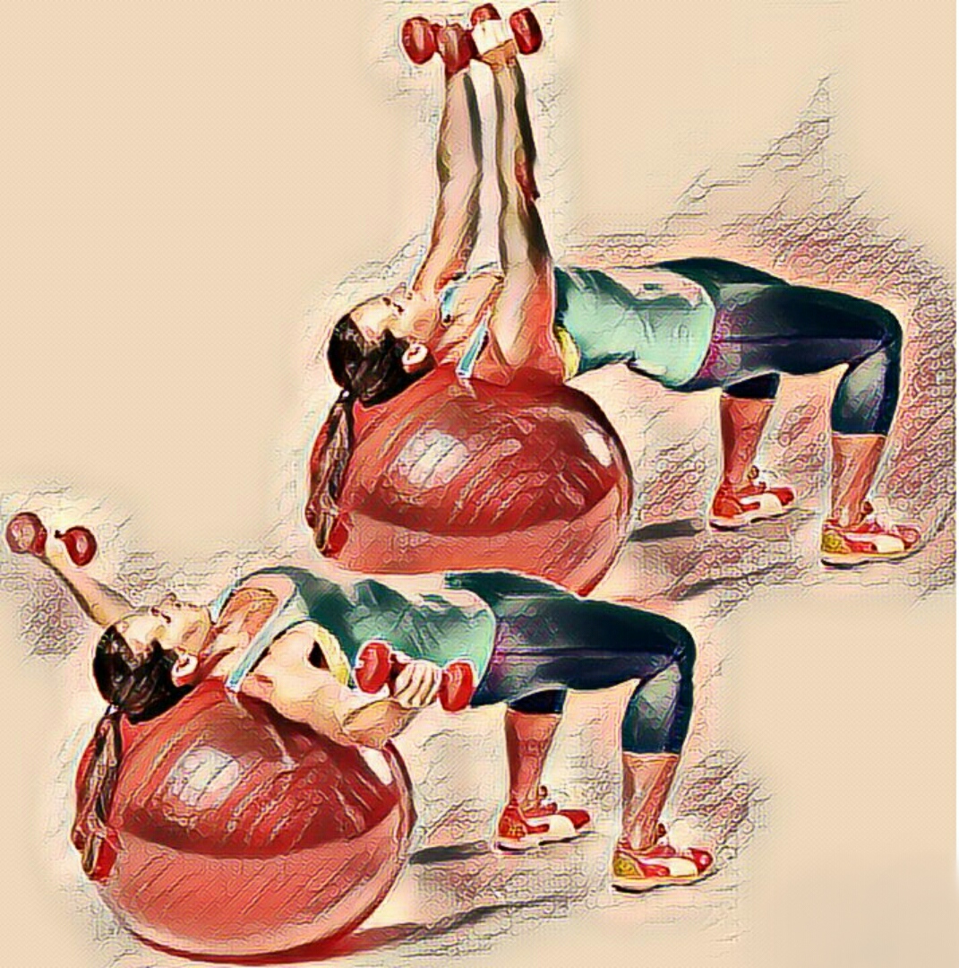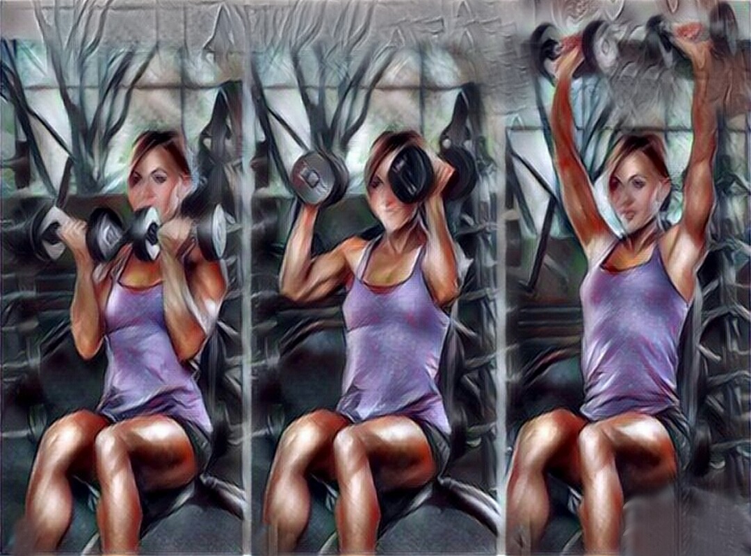 Merginoms ir moterims geriausias pasirinkimas yra atlikti sėdėjimą arba gulimą ant fitball. Galima atlikti tiek ant suolo, tiek ant kėdės. Šiek tiek sulenktos per alkūnes, rankos laiko hantelį virš galvos. Iškvepiant rankos su hanteliu atitraukiamos, papildomai sulenkiamos, įkvėpus – grįžtama į pradinę padėtį.