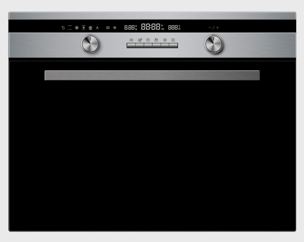 Integruota orkaitė, kuri bus puikus pagalbininkas ruošiant sudėtingus patiekalus. Gali palaikyti tam tikrą temperatūros režimą ir turi papildomų šildymo galimybių. Mėgstamų patiekalų skonis bus tobulas. Leidžiamas šildymas iki 300°C. Mikrobangų krosnelė turi 1 kW galią, todėl maistą pašildyti neprireiks daug laiko. Kad šildymas būtų vienodesnis, naudojama konvekcija. Taip pat yra galimybė naudoti elektrinį grilį. Modelyje yra sukamieji jungikliai. Visa reikalinga informacija rodoma skaitmeniniame ekrane. Komplekte ventiliatorius ir aušinimo laikmatis.