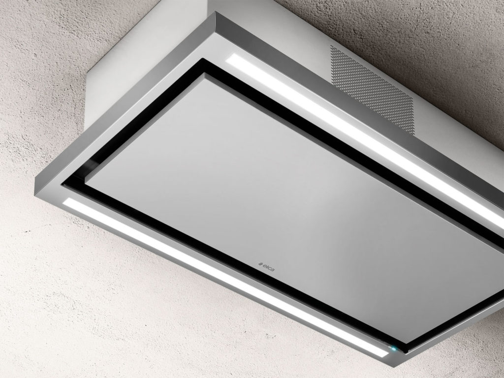 Šio tipo gaubtas taip pat turi tvirtinimą prie lubų. Jo kompaktiškas dydis, panašus į mažą lempą, ir stilingas balto stiklo dizainas leidžia jį lengvai naudoti restoranuose. Tokie gaminiai neužima daug vietos, nes yra aukštai virš kaitlentės. Tačiau, nepaisant didelio atstumo, įranga turi galingą variklį, galintį ketvirtuoju greičiu išvalyti 650 kubinių metrų oro. m/val Siekiant užtikrinti, kad maksimalus greitis nesukeltų daug triukšmo, gaminyje yra įmontuoti specialūs įrenginiai, kurie slopina triukšmo efektus. Todėl esant maksimaliai apkrovai, smeg KSCF90B triukšmo rodiklis yra apie 50 dB. Šiame modelyje yra šios papildomos funkcijos: apšvietimas, automatinis išsijungimas po naudojimo ir oro išsiurbimas aplink konstrukcijos perimetrą. Šis gaminys valdomas nuotolinio valdymo pulteliu. Į gaminį įmontuoti du filtrai: anglies ir riebalų.