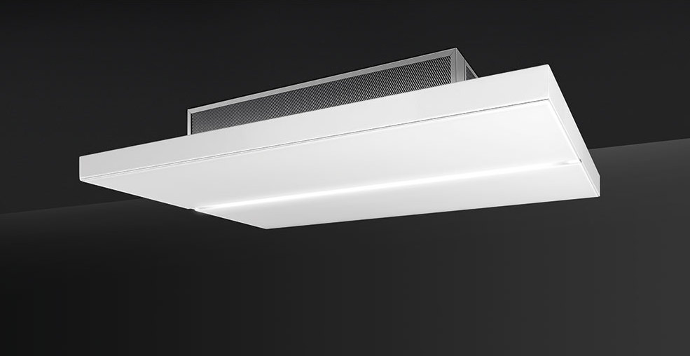 Šis prekės ženklas taip pat yra lyderis tarp lubų įrangos. Modernaus stiliaus iš kokybiško metalo ir stiklo pagaminta įranga atlieka ne tik tiesiogines savo funkcijas, bet ir tarnauja kaip papildomas dizaino elementas patalpos interjere. Platus plokščias paviršius tvirtai pritvirtintas prie lubų ir valdomas nuotolinio valdymo pulteliu. Papildoma šio modelio savybė yra malonus apšvietimas, keturi greičiai ir du veikimo režimai. Išvalyto oro siurbimas taip pat atliekamas išilgai konstrukcijos perimetro. Mažas triukšmo efektas išskiria šį prekės ženklą iš analogų. Būtent šiam gaminiui pirmenybę teikia bendrų patalpų savininkai. Jo kaina yra apie 140 000 rublių. Reikėtų pažymėti, kad šis gaminys nėra skirtas valyti orą nuo dulkių. Jame nėra anglies filtro.