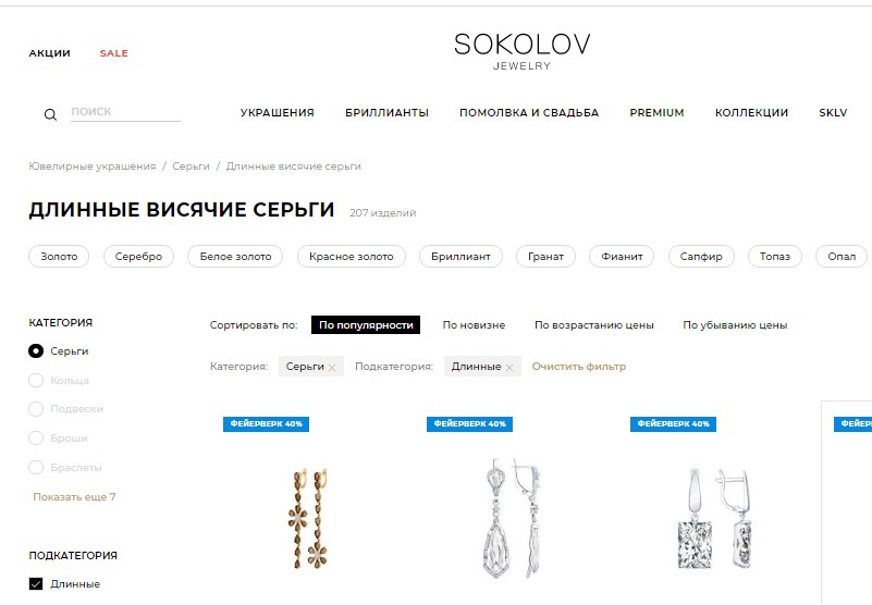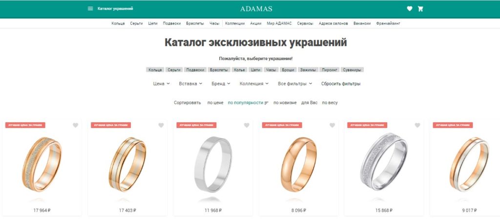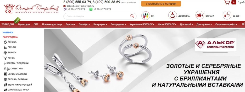 Geriausi papuošalų prekės ženklai čia pristato visų rūšių papuošalus iš aukso, sidabro, aksesuarus, bižuteriją. Populiariausia internetinė auksinių papuošalų su deimantais parduotuvė prieinamomis kainomis. Nuolat vyksta išpardavimai, gimtadienio dovanos, premijos kortelės nuo 5 iki 20%, bendros akcijos su Rostelecom, Russian Lotto, Tinkoff ir kt., kurios sužadina lankytojų susidomėjimą ir skatina pirkti. Vartotojų patogumui yra sukurta mobilioji aplikacija išmaniesiems telefonams ir iPhone, kuri pagreitina ir palengvina užsakymo pateikimo procesą bei dovanoja 2000 premijų įdiegus. Populiarumo paslaptis paprasta:
