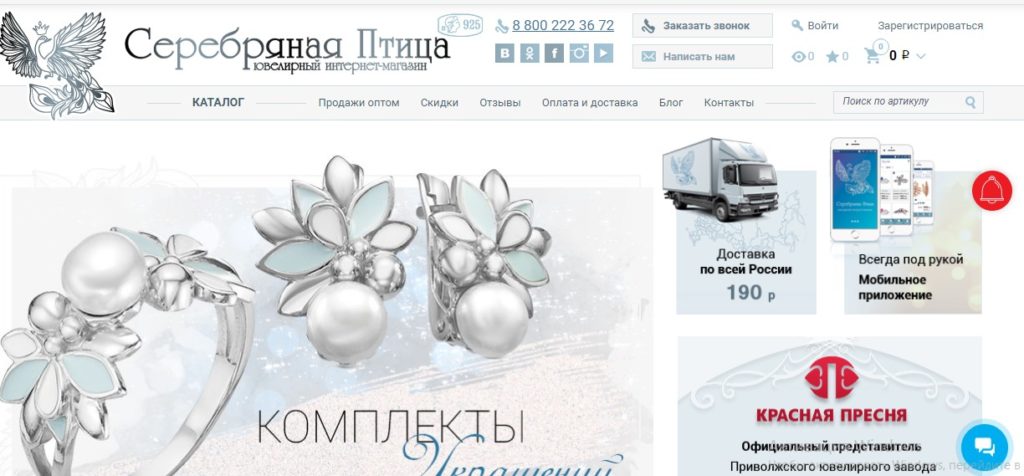 Oficiali gamintojo internetinė parduotuvė, gerai žinoma Rusijos juvelyrinių dirbinių gamykla Krasnaya Presnya, siūlo platų aukštos kokybės papuošalų ir suvenyrų asortimentą prieinamomis kainomis. Vizitinė prekės ženklo kortelė – paauksuoto, juodinto, sterlingo sidabro gamyba: papuošalai, indai, vaikiški gaminiai, religiniai daiktai. Svetainės ypatybės: