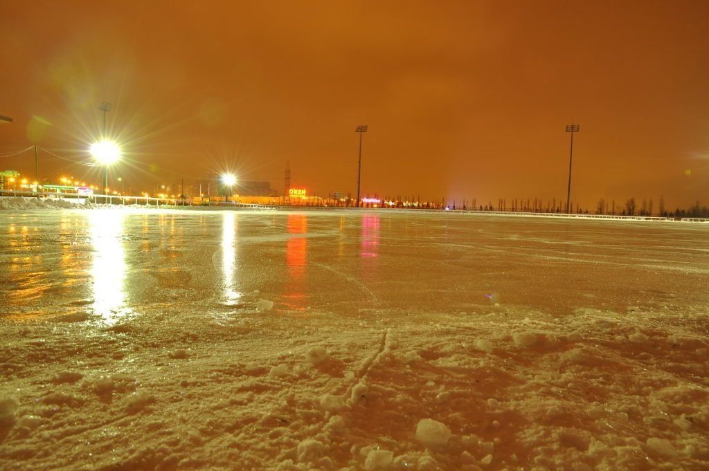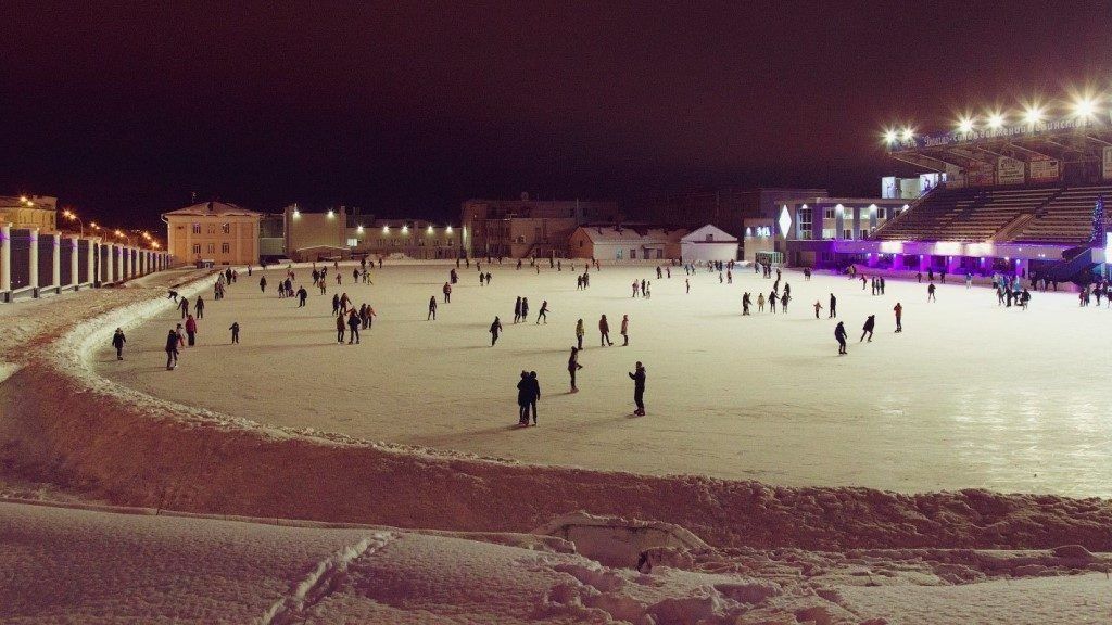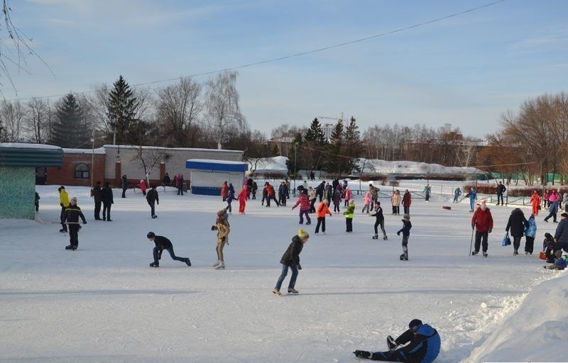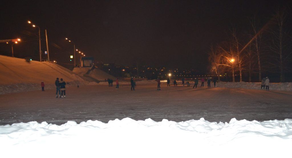 Les dimensions de cette patinoire sont assez petites, mais l'endroit est très cosy. Il est idéal pour les débutants de rouler ici, car il n'y a aucun danger que des professionnels expérimentés se précipitant à vitesse de croisière vous volent dessus. Il n'y a pas d'appareils supplémentaires pour nettoyer la glace, à l'exception des pelles. Cela rend la qualité de la glace pas la meilleure. A proximité se trouve un lac gelé, où les enfants glissent souvent sur les toboggans. Vous pouvez aller sur la glace pour une durée illimitée en ne payant que 50 roubles. Si vous n'avez pas vos propres patins, vous pouvez les louer pour 100 roubles de l'heure.
