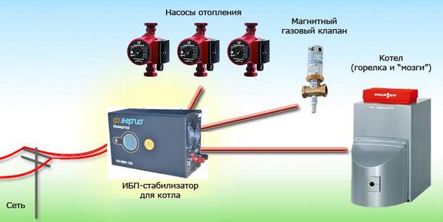 Mūsdienu gāzes katli papildus bāzes kurināmajam ir jāpavada arī ar elektrību. Tas vienlaikus baro vairākas sastāvdaļas: cirkulācijas sūkni, aizdedzes moduli, GSM un ventilācijas bloku, vadības paneli. Visām šīm daļām ir jādarbojas pastāvīgi, pat ja strāvas padeve ir pārtraukta. Šim nolūkam katli ir jāaprīko ar neatkarīgiem (nepārtrauktās) barošanas avotiem, tie ir arī UPS. Šāds avots ne tikai turpinās piegādāt iekārtu elektroenerģijas padeves pārtraukuma laikā, bet arī novērsīs bīstamas sekas (piemēram, shēmu plates izdegšanu) pēkšņa strāvas padeves pārtraukuma laikā.