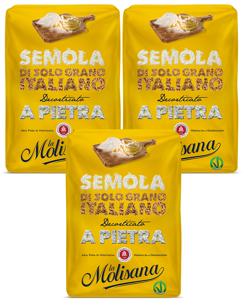 La Molisana Spa dikisar dari bijirin penuh, gandum durum, bijirinnya seragam, besar.