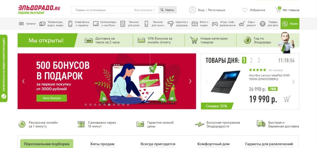 Eldorado membuat frasa berikut sebagai slogan mereka: "Orang ramai selesa." Sesungguhnya, adalah mudah bagi pembeli untuk menggunakan perkhidmatan laman web ini, kerana terdapat pelbagai jenis, banyak tawaran hangat.Di samping itu, titik isu itu sendiri (dalam kes penghantaran sendiri) terletak di banyak bandar di Rusia di bahagian bandar yang sesuai untuk kebanyakan penduduk.