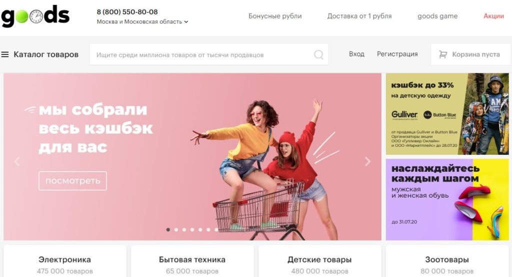 Pasaran telah mengumpulkan hanya kedai dalam talian terbaik yang telah melepasi kawalan kualiti. Lebih-lebih lagi, Barangan mengembangkan bilangan mereka setiap tahun supaya pembeli mempunyai lebih banyak pilihan. Di samping itu, promosi tetap diadakan di platform, jadi membuat pembelian di sini bukan sahaja mudah, tetapi juga menguntungkan.