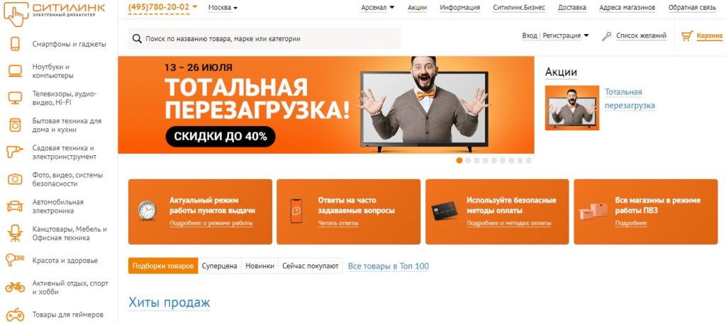 Rangkaian runcit terbesar dengan jumlah jualan peralatan rumah dan elektronik yang tinggi. Harga, perkhidmatan tidak berbeza dari kedai dalam talian dan biasa.
