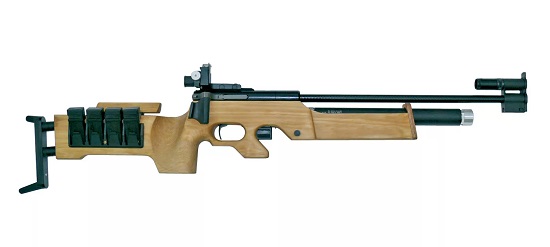 Ciri-ciri: kaliber senapang - 5.6 mm, panjang tong - 550 mm, berat 0 dari 3.5 kg. Penglihatan diopter boleh laras dan dilengkapi dengan penutup pelindung. Muncung tong dan pandangan hadapan juga disediakan dengan penutup berengsel yang melindungi daripada salji dan kotoran. Untuk mempercepatkan pemuatan semula, pengilang telah mencipta reka bentuk mudah baharu untuk melampirkan majalah. Dengan meletakkan penglihatan dan penglihatan hadapan pada tapak khas, anda boleh melaraskan garisan sasaran mengikut kehendak anda. Stok ergonomik diperbuat daripada kayu dan membolehkan pelarasan tengkuk dan pipi stok.
