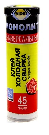42 rubel untuk 45 gram. Dikimpal sejuk, dua komponen. Sesuai untuk kaca, kayu, logam, seramik, plastik. Ia digunakan untuk beberapa bahagian kereta (kotak engkol, radiator, sistem ekzos), dan untuk sistem pemanasan, bekalan air.