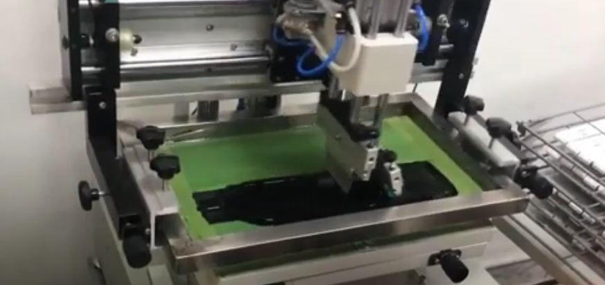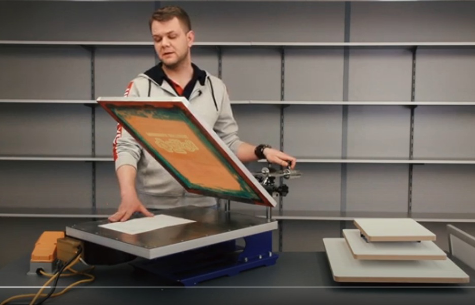 Pada peringkat akhir, imej dicetak terus melalui stensil dan cat digunakan pada mesh dengan menekan. Untuk larian kecil, mesin manual digunakan, untuk kumpulan besar, automatik, unit separa automatik.