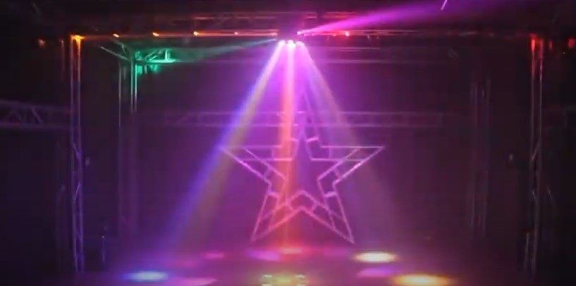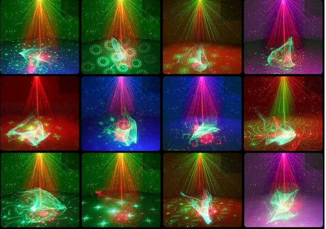 Unjuran animasi dibuat menggunakan laser dua warna - merah dan hijau. Terdapat mod cahaya putih - strob.
