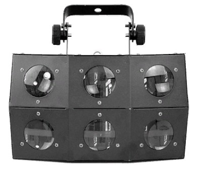 Peranti dinamik ringan dengan tiga output optik yang membolehkan anda mencipta kesan bergerak dalam dua satah, dengan keupayaan untuk menukar frekuensi strobing, kecerahan dan saiz corak cahaya. Terdapat 192 LED merah, hijau dan biru dengan diameter 5 mm. Dengan bantuan mereka, 85 kombinasi visual dicipta. Diperbuat daripada plastik tahan lama, di bahagian atas terdapat pemegang yang mudah dengan lubang untuk memasang peranti di bawah siling atau di dinding. Pengudaraan paksa digunakan sebagai sistem penyejukan. Pelbagai pilihan kawalan memudahkan anda menggunakan peranti untuk rancangan muzik.