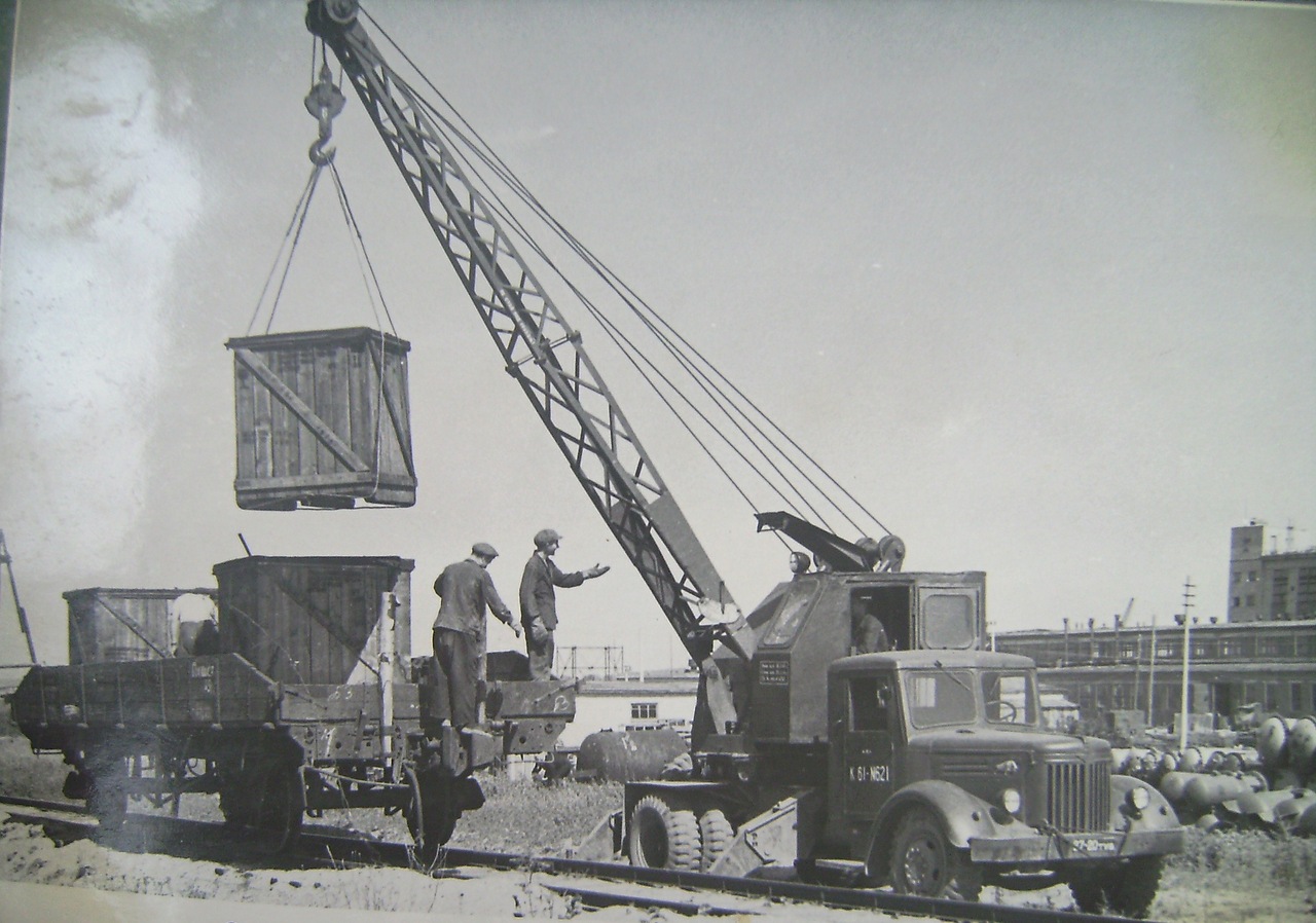 Kren domestik pertama (Atp-1) muncul pada awal 30-an abad yang lalu dan mempunyai kuasa yang mencukupi untuk mengangkat beban 1.5 ribu kg ke ketinggian lebih 2 meter. Lama kelamaan, ciri-ciri ini menjadi tidak mencukupi dan dalam dekad seterusnya model itu ditinggalkan. Perkembangan baru pengeluaran Soviet (Ak-3) mengatasi yang sebelumnya dengan susunan magnitud dan menunjukkan hasil yang sepadan dengan kapasiti tampung lebih 4 tan pada ketinggian maksimum 4-5 m. Kemudian perang bermula dan pengeluaran peralatan pembinaan telah dihadkan untuk tempoh yang tidak ditentukan. Pada awal 50-an, negara membina perusahaan baru dan pengeluaran disambung semula, dan dari masa ke masa, kekurangan peralatan pembinaan dikurangkan kepada minimum. Pada 60-an abad yang lalu, jurutera Soviet mencipta model inovatif, kren itu berfungsi secara autonomi dari sistem kereta. Menjelang tahun 70-an, pendekatan reka bentuk peranti sedemikian telah berubah lagi, kini kren direka dengan pemacu jenis hidraulik. Pada masa yang sama, reka bentuk trak pembawa muatan turut dikemas kini. Perubahan utama dalam teknologi baru dianggap sebagai casis yang dinaik taraf dengan tetulang dan canggih, pada masa itu, enjin auto, yang bersama-sama menjadikan reka bentuk yang paling kompetitif.