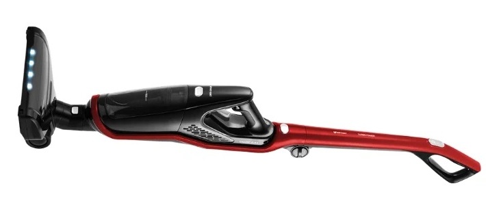 Pembersih vakum tegak dengan fungsi pengumpulan cecair dan pelarasan kuasa pada pemegang, yang boleh ditanggalkan, menukar peranti menjadi peranti pegang tangan. Kawasan pembersihan dilengkapi dengan lampu latar, adalah mungkin untuk menggunakan berus elektrik (termasuk).