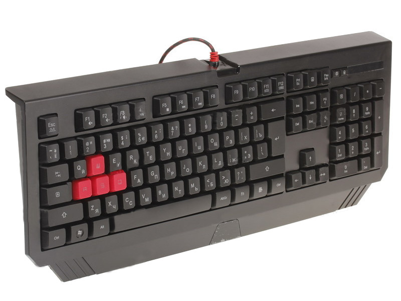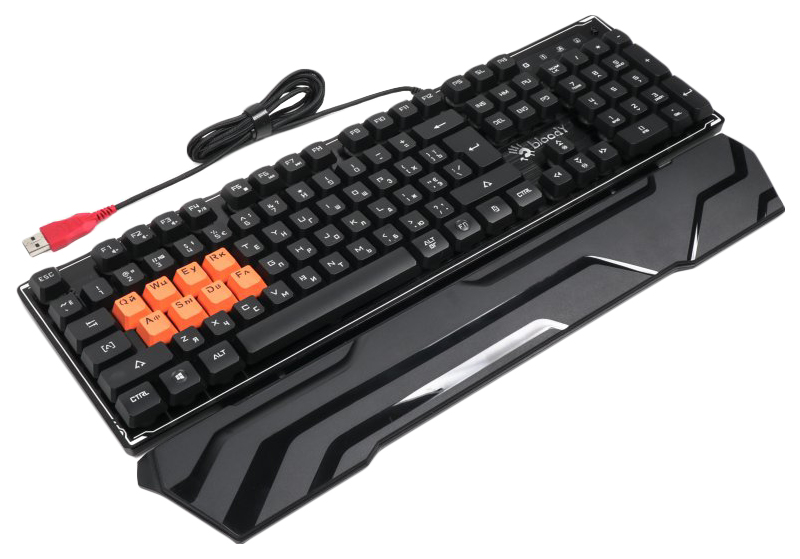 Bloody B120 dianggap sebagai papan kekunci permainan, dilengkapi dengan blok WSAD bertetulang, rehat pergelangan tangan, lampu latar, yang boleh dilaraskan bergantung pada kehendak pengguna. Kekunci model bergetah timbul, yang menghilangkan kesan tergelincir. Terdapat butang tambahan dengan tindak balas pantas, yang dilindungi daripada pendedahan kepada cecair. Model ini akan menjadi pembelian yang hebat untuk mereka yang suka permainan komputer.