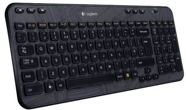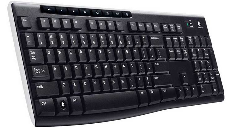 Model Logitech Wireless Keyboard K270 tanpa wayar, dibuat dalam gaya klasik dengan susun atur butang standard. Kehadiran kunci tambahan membolehkan anda melancarkan penyemak imbas dengan mudah, mengawal bunyi, dan juga menyambungkan mod tidur penyemak imbas.Panel ini dilengkapi dengan 112 butang utama dan 8 butang tambahan.