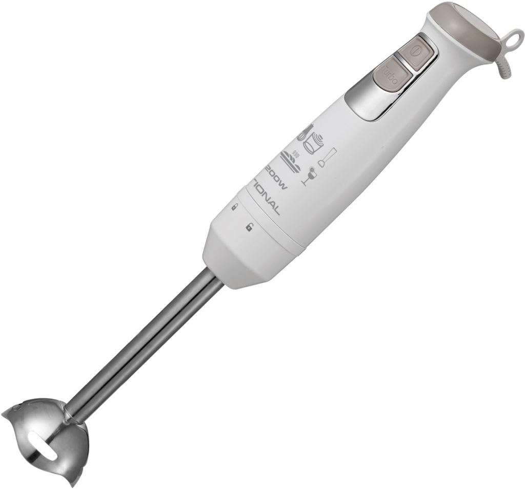 Mod turbo disediakan, mempunyai kawalan kelajuan lancar mekanikal. Panjang talinya ialah 1 m. Terdapat pemukul untuk sebat. Dibuat dalam warna putih. Tidak berfungsi dengan bising. Pisau diperbuat daripada keluli tahan karat berkualiti tinggi. Kos: 2590 rubel.