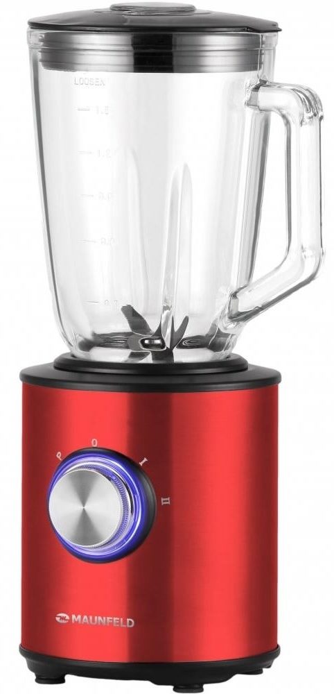 Jag untuk bahan-bahan diperbuat daripada kaca berkualiti tinggi, terdapat bukaan berasingan untuk memuatkan. Terdapat ruang penyimpanan untuk kord kuasa. Membolehkan anda memecahkan ais atau menggunakan pemprosesan impuls. Harga: 4500 rubel.