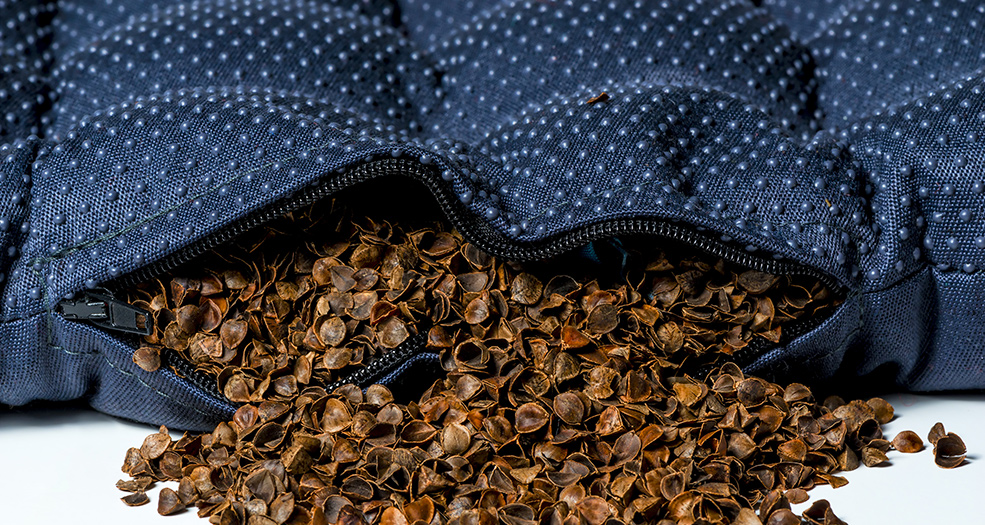 Mengikut pengisian dalaman, lebih baik memilih produk yang diperbuat daripada bahan semula jadi - sekam soba atau herba kering. Mereka lebih anjal dan lebih baik mengambil bentuk badan. Kelas pada mereka akan menjadi lebih selesa.