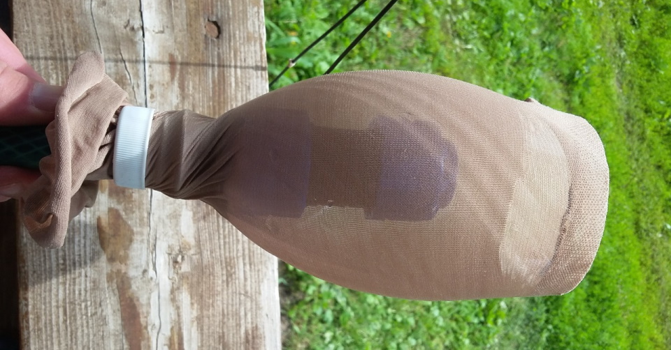 Hos tidak memasuki botol dengan ketat supaya apabila diturunkan ke dalam tong, penapis tidak terapung, dan udara yang tinggal keluar dari leher.
