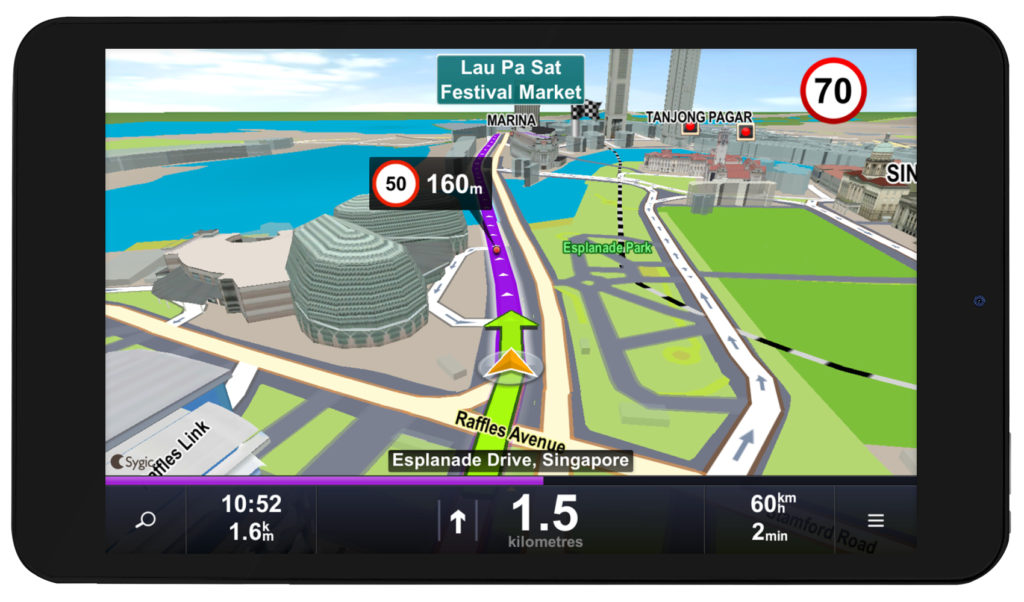 Arahan suara juga tersedia dalam aplikasi, dengan bantuan pemandu menerima maklumat yang diperlukan, sambil tidak terganggu dari jalan raya.