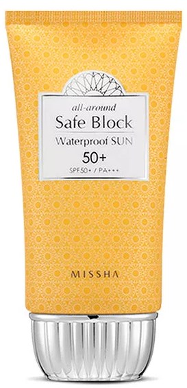 Syarikat itu menawarkan pembeli satu siri pelindung matahari - All Around Safe Block Sun, yang bukan sahaja melindungi kulit daripada kesan negatif sinaran ultraungu, tetapi juga melembapkannya. Kesemuanya adalah kalis air. Daripada itu, kami memilih krim dengan tahap perlindungan tertinggi SPF 50+ PA +++, yang disediakan oleh titanium dioksida dan zink oksida. Seperti semua produk sebelumnya, ini dibungkus dalam tiub plastik dengan muncung panjang untuk penggunaan yang menjimatkan dan dos yang mudah. Konsistensinya agak padat dan berminyak, tetapi apabila digunakan ia mudah diedarkan dan cepat diserap. Terdapat sedikit kilauan hingga penamat. Ia tidak bercanggah dengan kosmetik hiasan dan dilapisi dengan serbuk dengan sempurna. Komposisi ini mengandungi sejumlah besar ekstrak tumbuhan yang mempunyai kesan penyayang.