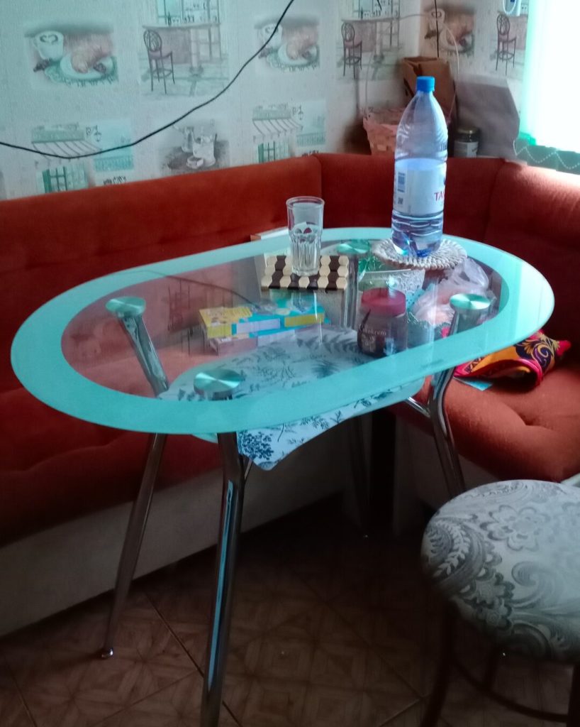 Meja dapur dengan bahagian atas lutsinar menarik perhatian semua orang. Bahagian atas meja diperbuat daripada kaca terbaja lutsinar, jadi ia boleh menahan beban yang berat dan mudah dibersihkan. Produk ini mempunyai bentuk bujur dan kelihatan baik di ruang kecil. Kaki diperbuat daripada logam tahan lama, yang disalut dengan cat khas dan tidak berkarat. Ia juga perlu untuk memberi perhatian kepada rak yang mudah di bawah meja, di mana anda boleh menyimpan barang-barang kecil atau tuala dapur lipat.