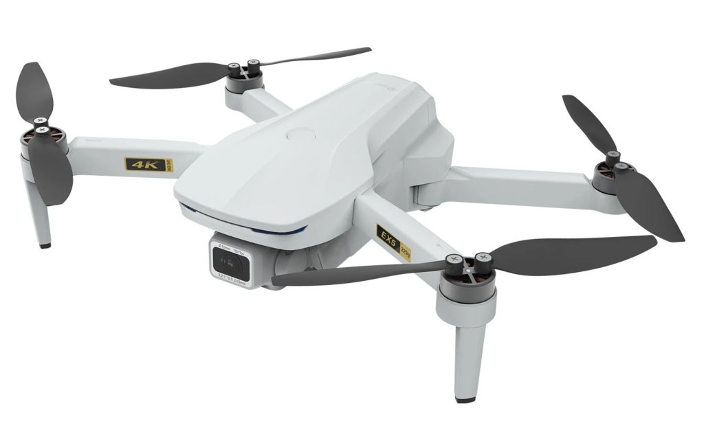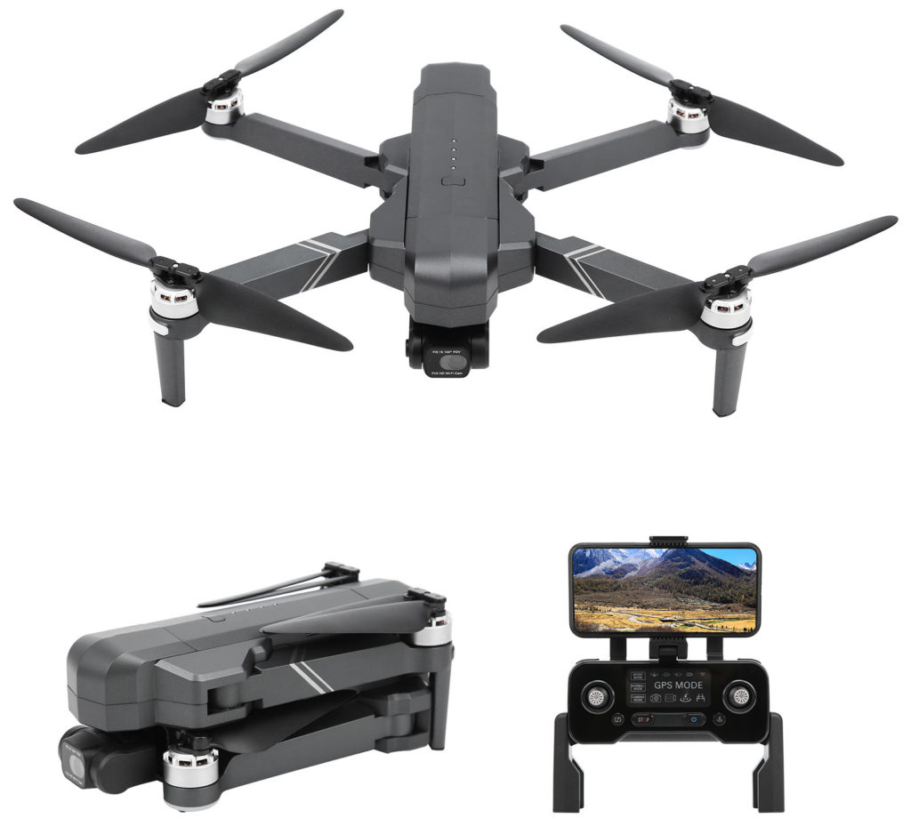 Model boleh lipat dengan penstabil 3 paksi, kamera 4K Ultra HD. Di bahagian bawah kes yang diperbuat daripada plastik kalis kejutan, terdapat 8 penyokong bergetah memberikan pendaratan lembut. Motor tidak berus, ringan, tidak terlalu panas semasa operasi.