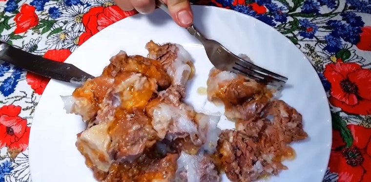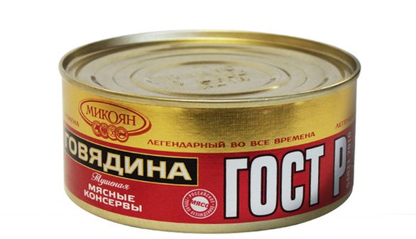 Pengilang domestik gembira dengan produk berkualiti yang dibuat mengikut GOST. Pengguna mencatatkan konsistensi kandungan yang baik, tanpa tambahan tambahan, tendon, filem. Rasa dan aroma daging kaya, menyenangkan. Kuah beku dalam bentuk jeli yang lazat dengan kepingan daun bay, menjadi lutsinar apabila dipanaskan. Banyak tisu otot dimasukkan ke dalam, yang sepadan dengan piawaian GOST. Label mengandungi maklumat berikut: