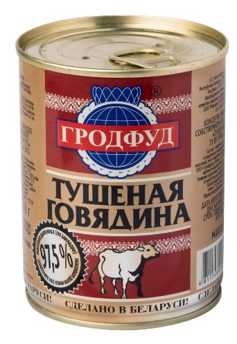 Produk murah dengan kualiti yang sangat baik dengan rasa yang sangat baik dari daging asli. Daging lembu rebus gred teratas dijual dalam tin rata kuning terang, dengan huruf kuning dan merah pada label kertas, yang menjadikannya dikenali di kalangan analog daripada syarikat lain. Tiada kunci pada penutup, penandaan mengandungi semua maklumat yang boleh dipercayai yang diperlukan. Ia hanya mengandungi bahan semulajadi, tanpa pengawet sintetik dan penambah baik. Apabila anda membuka balang, anda serta-merta merasakan aroma daging lembu asli yang kaya, isinya berketul-ketul, dengan sedikit kuah jernih tanpa ketulan dan lemak pepejal, mudah dipisahkan dari daging dan dinding balang. Terdapat urat, tetapi sangat sedikit. Apabila memasak, ia sesuai dengan mana-mana ulam, anda boleh menggunakannya dengan hangat. Rempah secara sederhana, daging lembu tidak terlalu masak, lembut dan lembut.