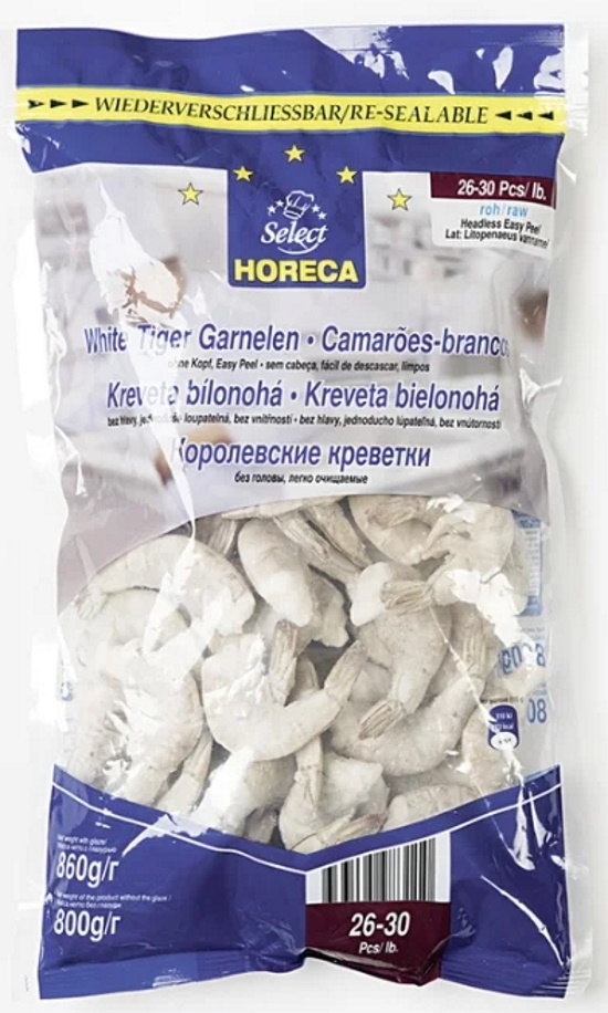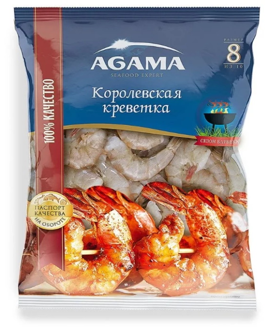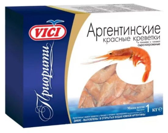Produk buatan India dengan makanan laut tanpa kepala Vannamei, ditanam di perairan suam ladang akua dan dicirikan oleh saiz besar dengan kandungan lemak yang berkurangan. Daging berair dan lembut kaya dengan protein gred tinggi, iodin, kalsium dan zink. Penggunaan teknologi dengan fungsi pembekuan segera mengekalkan unsur surih yang berguna untuk jangka hayat yang panjang.