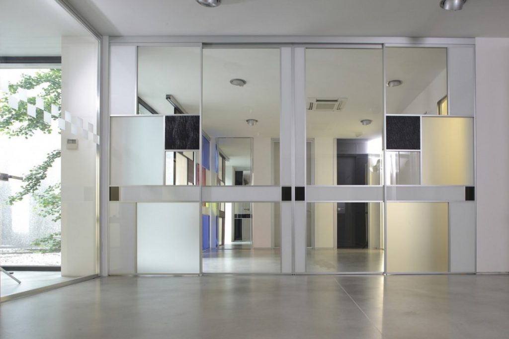 Sekatan gelongsor adalah yang paling mudah untuk dipasang, ia tidak memerlukan kerja pemasangan yang lama, bagaimanapun, ia juga lebih rendah daripada struktur lain dalam sifat kekuatan dan kalis bunyi. Kebanyakan partition ini diperbuat daripada kayu dan kaca, yang memberikan estetika persekitaran, tetapi tidak menambah keselesaan. Reka bentuk dengan poket (pintu boleh ditarik balik) jauh lebih nipis daripada yang lain, ini adalah kelebihan utamanya, tetapi ia juga tidak mempunyai ciri kalis bunyi yang mencukupi.