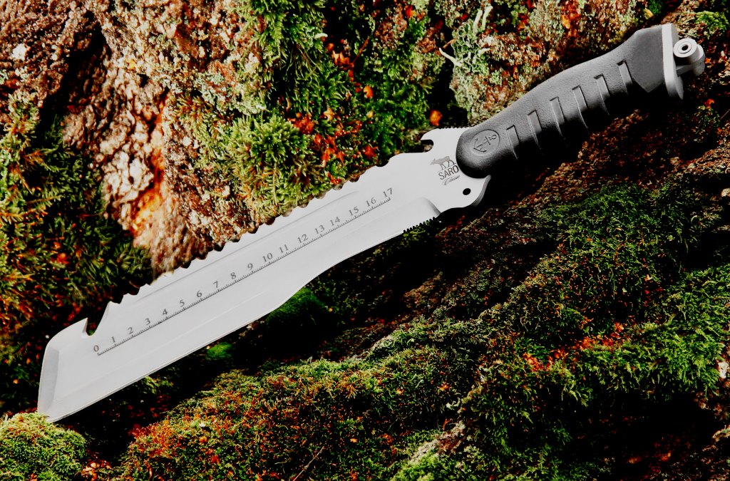 Ciri ciri dianggap sebagai kehadiran gergaji (jenis cakera) dan bukannya bilah dan pemegang berat. Di dalam hutan yang tidak dapat ditembusi, peranti sedemikian tidak dapat digantikan.Produk sedemikian mendapat populariti selepas filem adaptasi Rimbaud. Ia mengambil masa bertahun-tahun percubaan keras untuk membangunkan reka bentuk pengeluar terbaik dunia. Sehingga kini, senjata taktikal sangat diminati di kalangan tentera mahupun rakyat biasa (pelancong).