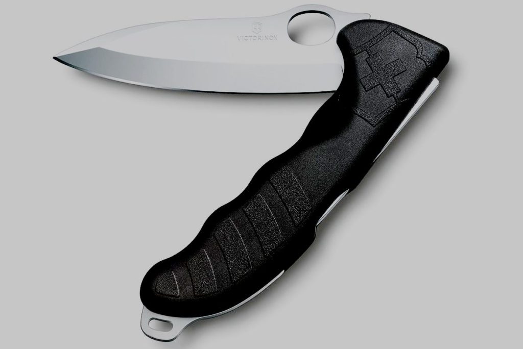 Peranti mudah, sedia membantu pada bila-bila masa. Pilihan lipat. Tergolong dalam kategori ringan dan nipis. Pemegangnya selesa, bilahnya tahan lama. Ia dilekatkan pada seluar dengan klip yang boleh dipercayai yang tidak akan membenarkan alat itu hilang semasa memburu atau memancing.