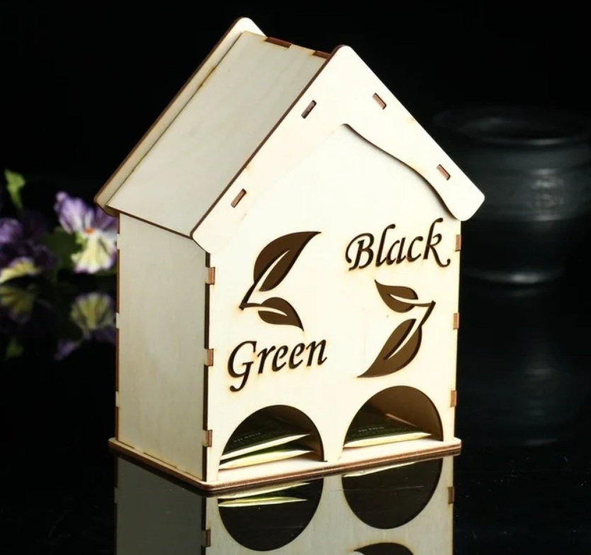 Kotak asal dalam bentuk rumah dengan bumbung boleh tanggal akan menamatkan pencarian kotak teh berharga dalam kesibukan rumah. Semua isi rumah akan cepat terbiasa dengan peranti yang bergaya, dan ia kelihatan baik di atas meja.
