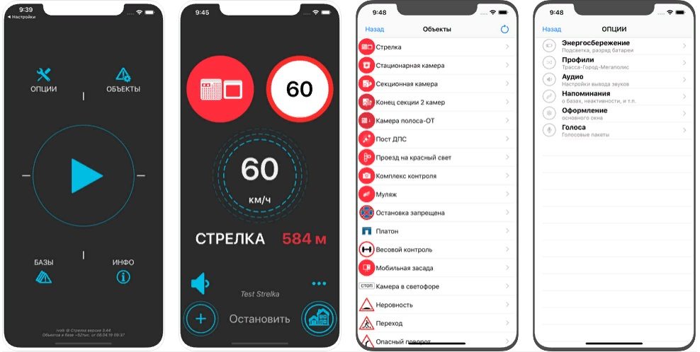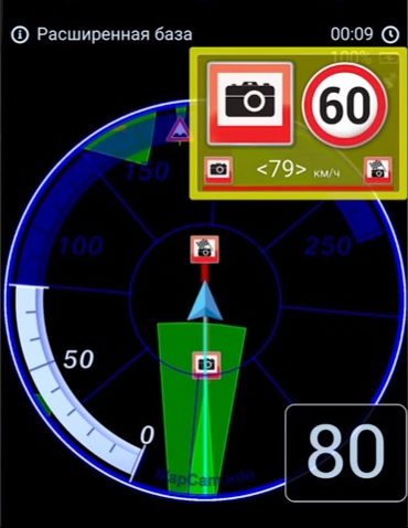 Pangkalan data dikemas kini dengan cepat, jika anda mahu, anda boleh menambah radar baharu sendiri."Pangkalan standard" memberitahu tentang semua jenis pencari, termasuk siaran mudah alih dan Plato. "Dilanjutkan" memberi amaran tentang bahaya seperti lintasan kereta api, lintasan pejalan kaki, persimpangan yang sukar, memasuki jalan raya dan banyak lagi.