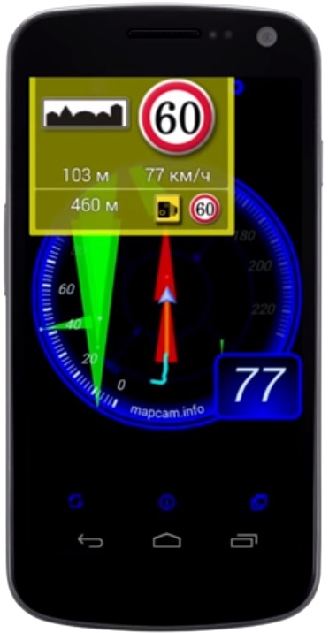 Aplikasi pemetaan serasi dengan mana-mana pelayar. Berfungsi di latar belakang untuk menjimatkan kuasa bateri pada telefon pintar anda. Pemandu boleh memilih daripada 4 jenis antara muka, tetapan jarak dan amaran melalui tetapan yang mudah dan jelas.