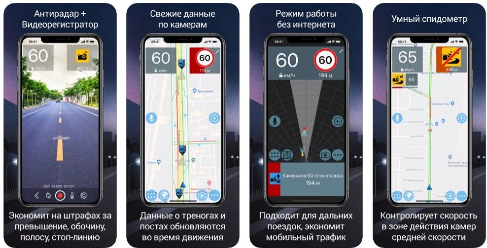 Di gedung aplikasi, program ini tersedia dalam versi terpenggal percuma dan versi berbayar dengan ciri lanjutan.Perisian menunjukkan lokasi kamera di kedua-dua lebuh raya utama dan menengah. Mengecam jenis kamera atau radar dan memaparkan semua maklumat pada skrin. Mengesan kelajuan semasa kenderaan dan mengeluarkan amaran terlebih kelajuan.