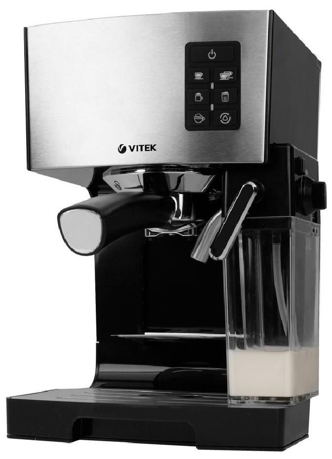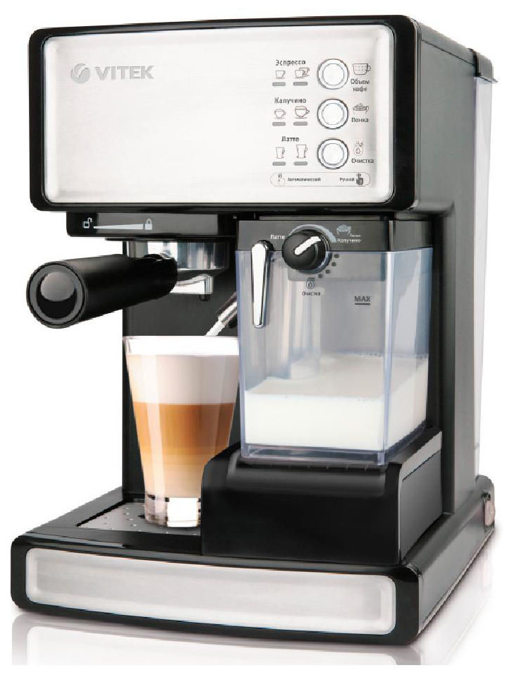 Pembuat kopi Rozhkovy dari pengeluar Rusia. Ini ialah model klasik yang agak ringkas dengan kawalan yang mudah. Anda boleh menyediakan minuman kegemaran anda dengan hanya menekan satu butang. Saiz bahagian boleh dilaraskan secara manual. Tekanan di sini adalah tahap standard (15 bar). Tanduk dibuat menggunakan teknologi "Perfect Brewing", berkat buih susu yang tebal dan gebu. "VITEK VT-1522 BK" dilengkapi dengan cappuccinator automatik. Badan diperbuat daripada keluli tahan karat dan plastik. Isipadu tangki air ialah 1.4 liter. Kos purata "VITEK VT-1522 BK" ialah 15,905 rubel.