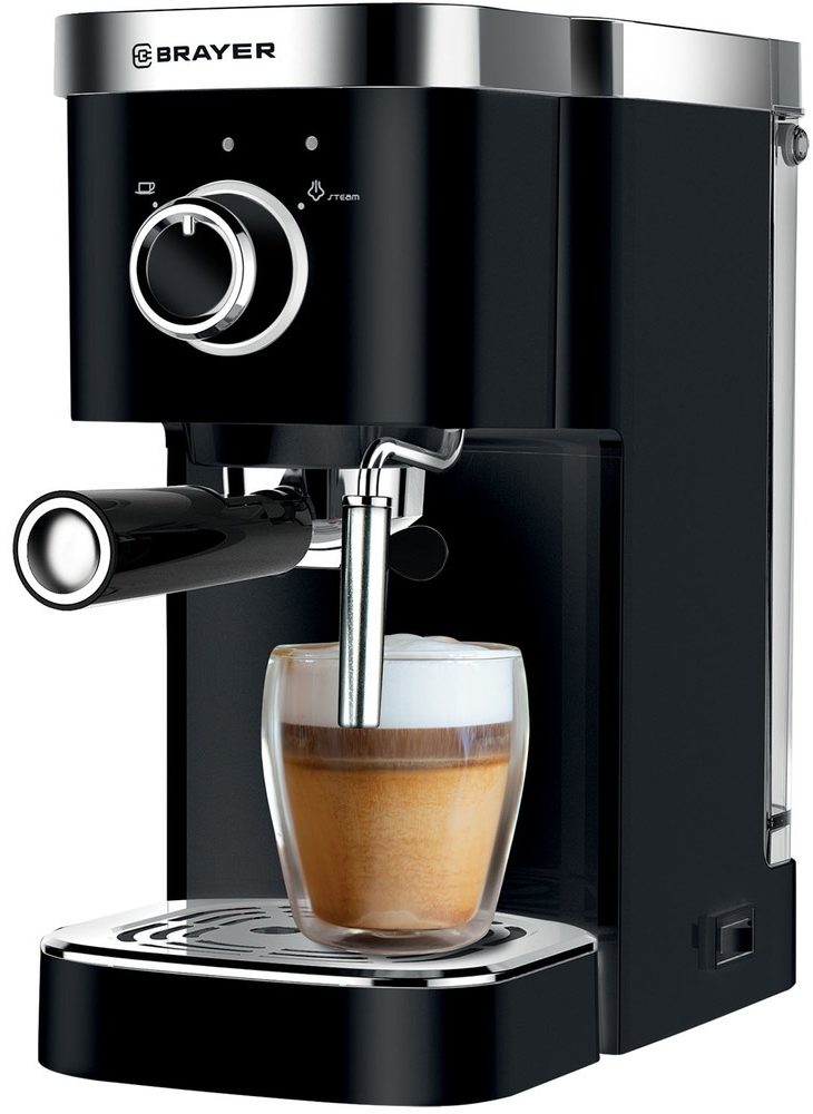 Sarung peranti diperbuat daripada plastik hitam dan keluli tahan karat. Tanduknya adalah logam. Kawalannya mudah, jenis sentuh, butang dilengkapi dengan penunjuk, jadi mudah untuk mengesan peringkat penyediaan minuman.Permukaan di mana cawan diletakkan tidak tercalar dan tahan terhadap kerosakan mekanikal kecil, berkat yang BRAYER BR-1101 mengekalkan penampilan estetiknya untuk masa yang lama. Kos purata ialah - 9,590 rubel.