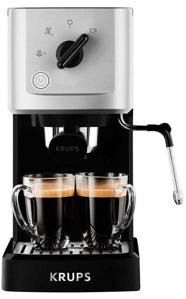 Model kompak klasik yang dilengkapi dengan cappuccinator manual. "Krups Calvi Meca XP 3440" dibuat dalam reka bentuk yang terkawal dan tenang. Pam memberikan tekanan 15 bar. Memanaskan badan adalah pantas berkat termoblock terbina dalam. Dengan model ini anda boleh menyediakan espresso, cappuccino, latte. Penyediaan minuman berlaku dalam mod manual, di mana bilangan hidangan, ketumpatan buih susu ditentukan oleh pengguna. Reka bentuk peranti dilengkapi dengan petak untuk sudu pengukur, serta untuk penapis yang boleh diganti. Badan pembuat kopi diperbuat daripada plastik, dulang dulang boleh tanggal diperbuat daripada logam. Isipadu tangki air ialah 1.1 liter. Kos purata model ialah 9,900 rubel.