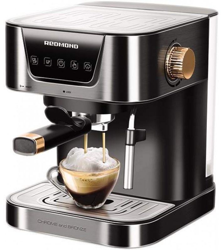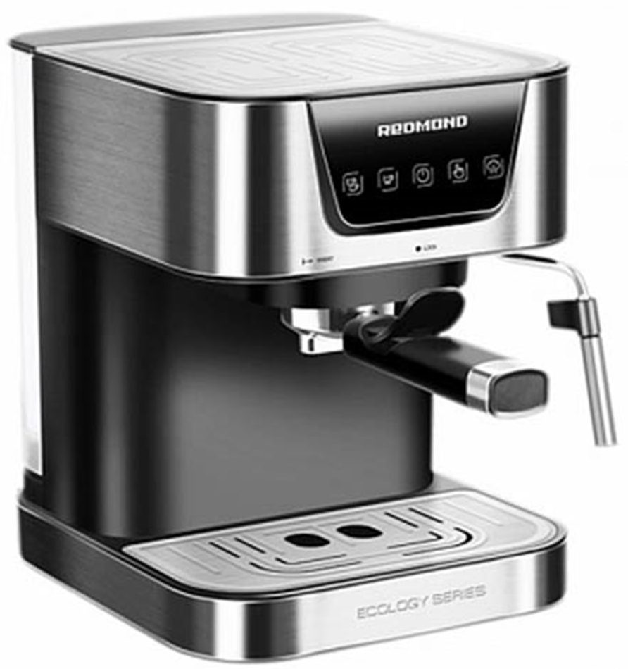 Satu lagi model pembuat kopi deria yang layak dari REDMOND. Bekas air itu memuatkan 1.5 liter, cukup untuk membuat 12 cawan Americano. Tahap tekanan adalah standard, 15 bar. Jumlah hidangan minuman boleh ditukar mengikut budi bicara anda, dan tetapan yang ditetapkan boleh disimpan dalam memori peranti, yang menghapuskan keperluan untuk mengkonfigurasi semula setiap kali anda mengakses pembuat kopi. Reka bentuk model membolehkan anda menyediakan latte dan cappuccino, dengan bantuan muncung cappuccinator, buih susu lembut disebat. Di samping itu, "REDMOND RCM-M1513" dilengkapi dengan meja untuk memanaskan cawan, dan juga menyediakan keupayaan untuk menyediakan dua hidangan minuman pada masa yang sama. Kit termasuk buku resipi, mengumpul pelbagai resipi untuk minuman kopi.Harga purata model ialah 10,699 rubel.