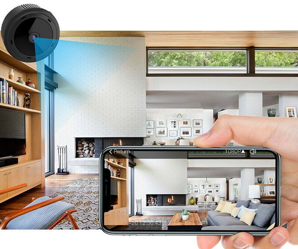 Kamera mini tanpa wayar dengan alat kawalan jauh dan sistem penglihatan malam untuk pengawasan terselindung. Menyokong IOS, Android dan PC. Mikrofon terbina dalam. Sensor gerakan dipasang.