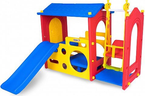 Kompleks ini direka untuk atlet termuda, dari 2 tahun. Semua elemen diperbuat daripada plastik tahan hentaman, ia tidak reput (apabila dipasang di luar), tidak ada sudut tajam, ia tahan beberapa pemasangan dan pembongkaran. Boleh dipasang di dalam dan di luar rumah. Gelongsor terletak berhampiran pintu dan berhampiran buaian. Negara asal: Korea Selatan. Dimensi: 176x175x132 cm Berat: 23 kg. Kos: 24849 rubel.