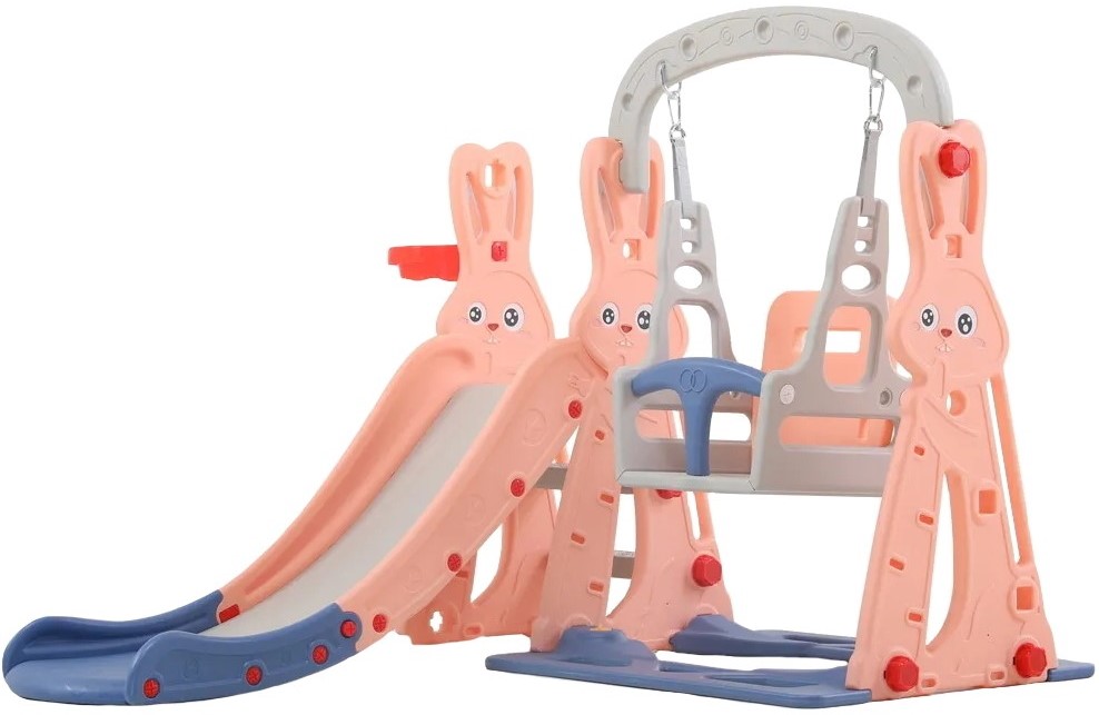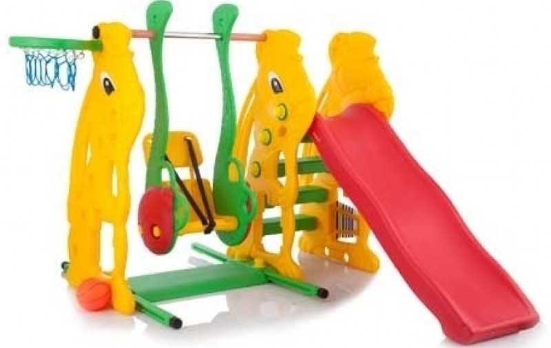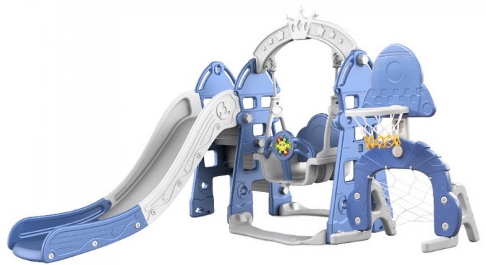 Kompleks gelongsor adalah pilihan padat yang sangat baik untuk bermain sukan untuk kanak-kanak dari 2 tahun. Buaian mempunyai tali keselamatan dan palang. Bingkai diperbuat daripada polimer tahan hentaman yang akan bertahan lama. Slaid mempunyai sisi yang tinggi, permukaannya licin. Kit termasuk gelung bola keranjang yang dipasang pada sisi dirian sisi. Kos: 16680 rubel.