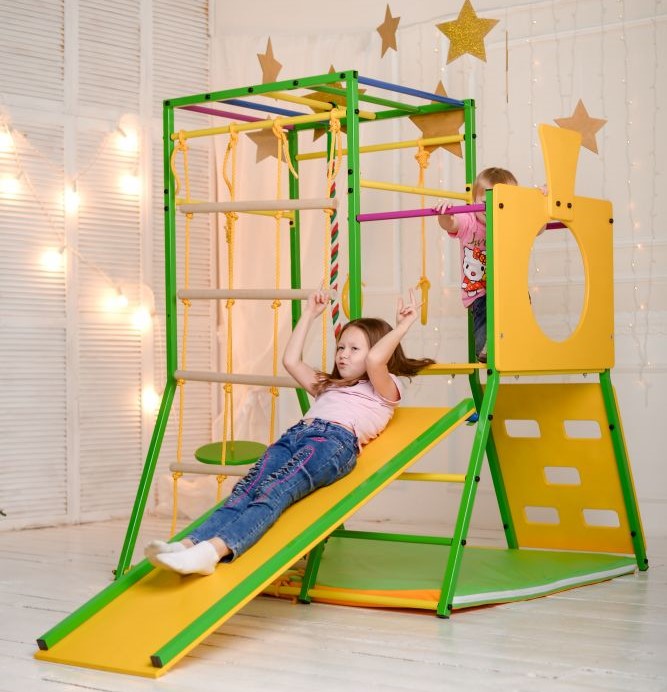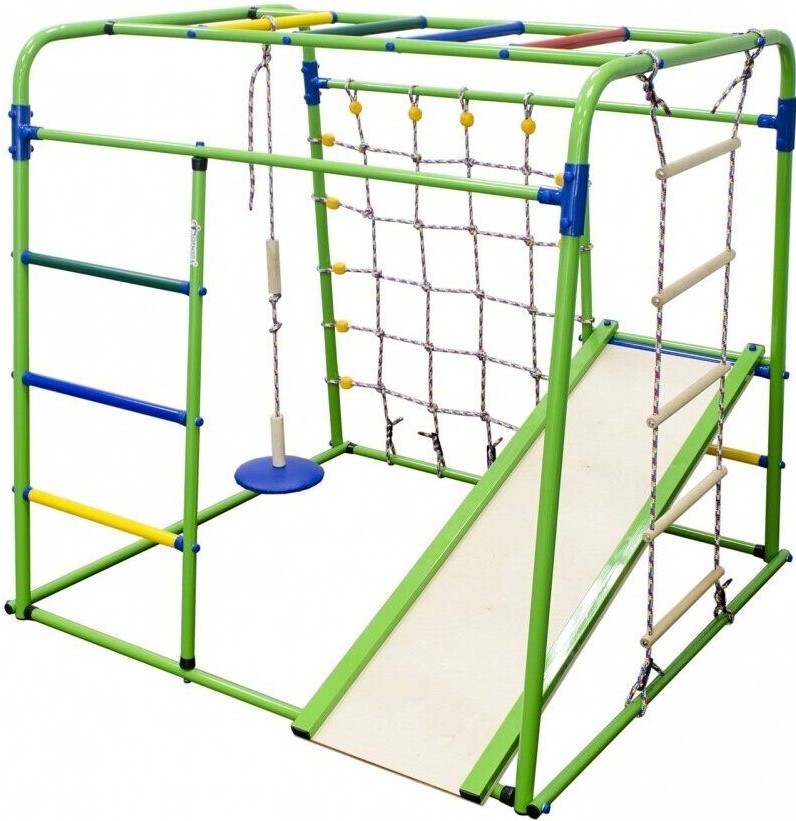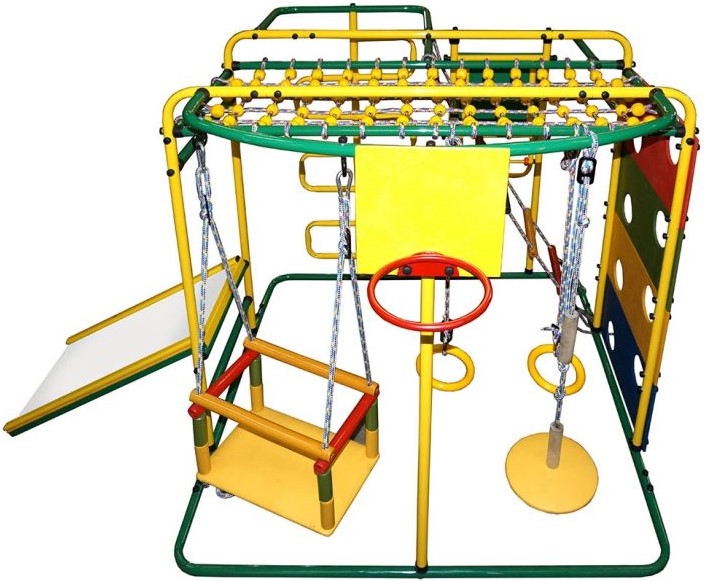 Kompleks ini termasuk banyak peralatan sukan untuk kanak-kanak dari semua peringkat umur. Pemasangan yang boleh dipercayai menghilangkan pergerakan struktur, tidak memerlukan lubang di dinding atau siling. Mudah dibuka dan dipindahkan ke lokasi lain. Slaid mempunyai sisi lembut, menghapuskan kemungkinan kecederaan kepada atlet kecil. Ketinggian slaid boleh dilaraskan. Direka untuk kanak-kanak dari umur 3 tahun. Dimensi: 1.17x1.3x1.07 m Berat: 32 kg. Beban maksimum: 50 kg. Harga purata: 14200 rubel.
