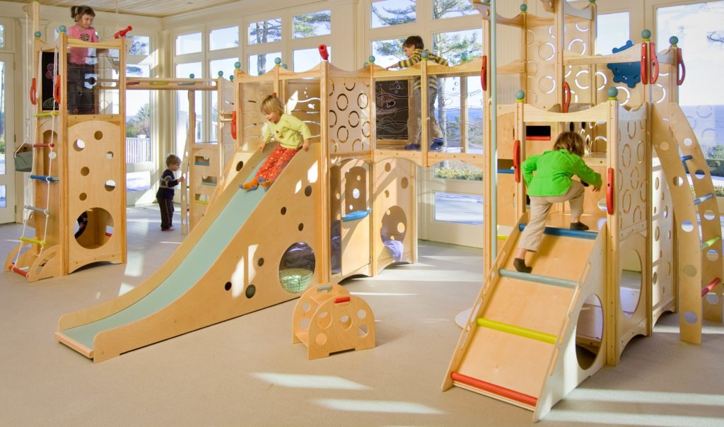 Kompleks luar adalah besar-besaran, termasuk banyak cengkerang dan unsur yang berbeza (kotak pasir, trampolin), ia diperbuat daripada logam berkekuatan tinggi, dirawat dengan sebatian anti-karat khas. Model dalaman paling kerap diperbuat daripada plastik, lebih padat. Pilihan sejagat mempunyai reka bentuk yang boleh dipasang di rumah dan di jalan, mereka mempunyai kes logam atau plastik, mungkin terdapat kanopi khas atau aksesori tambahan lain.