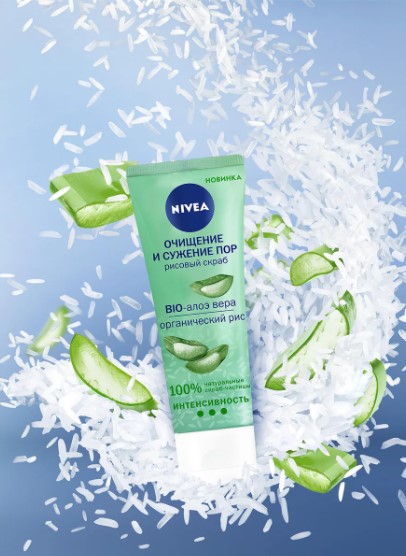 Scrub muka beras dengan Bio-aloe vera memperbaharui, menyegarkan, mengkilapkan wajah. Sesuai untuk kegunaan kerap (1-2 kali seminggu). Tekstur gel mudah disapu dan dibilas. Ia mempunyai keamatan gosok yang tinggi. Kos purata: 240 rubel.